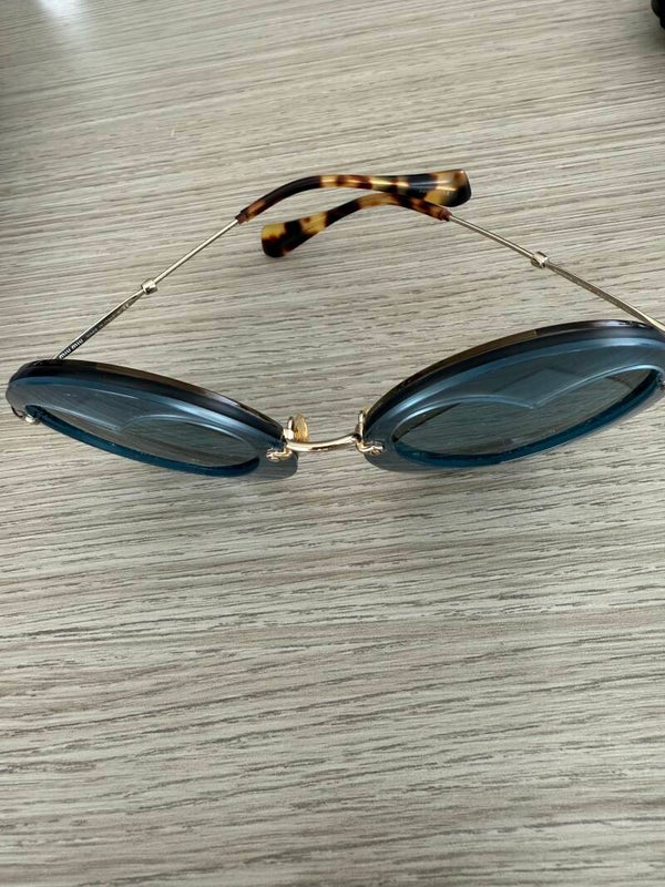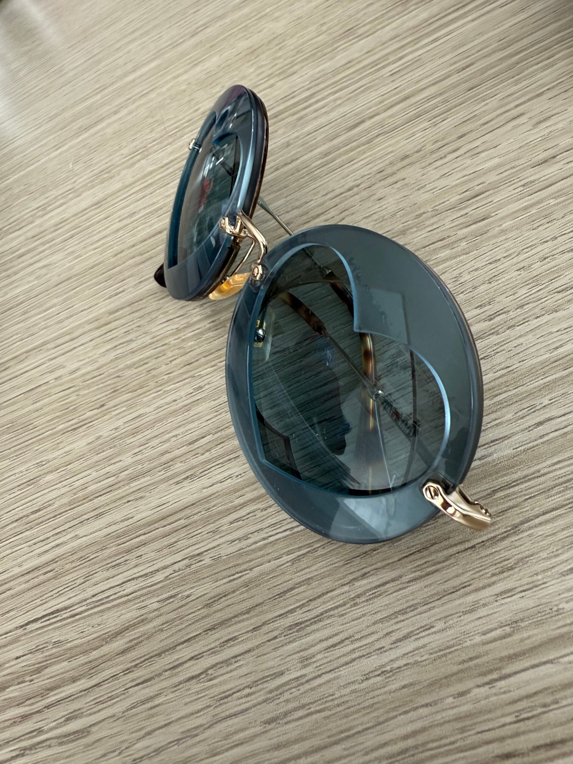 Occhiali cuore azzurro polvere e stecchette gold e tartarugato .