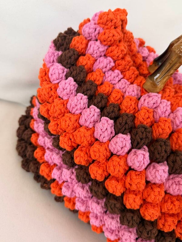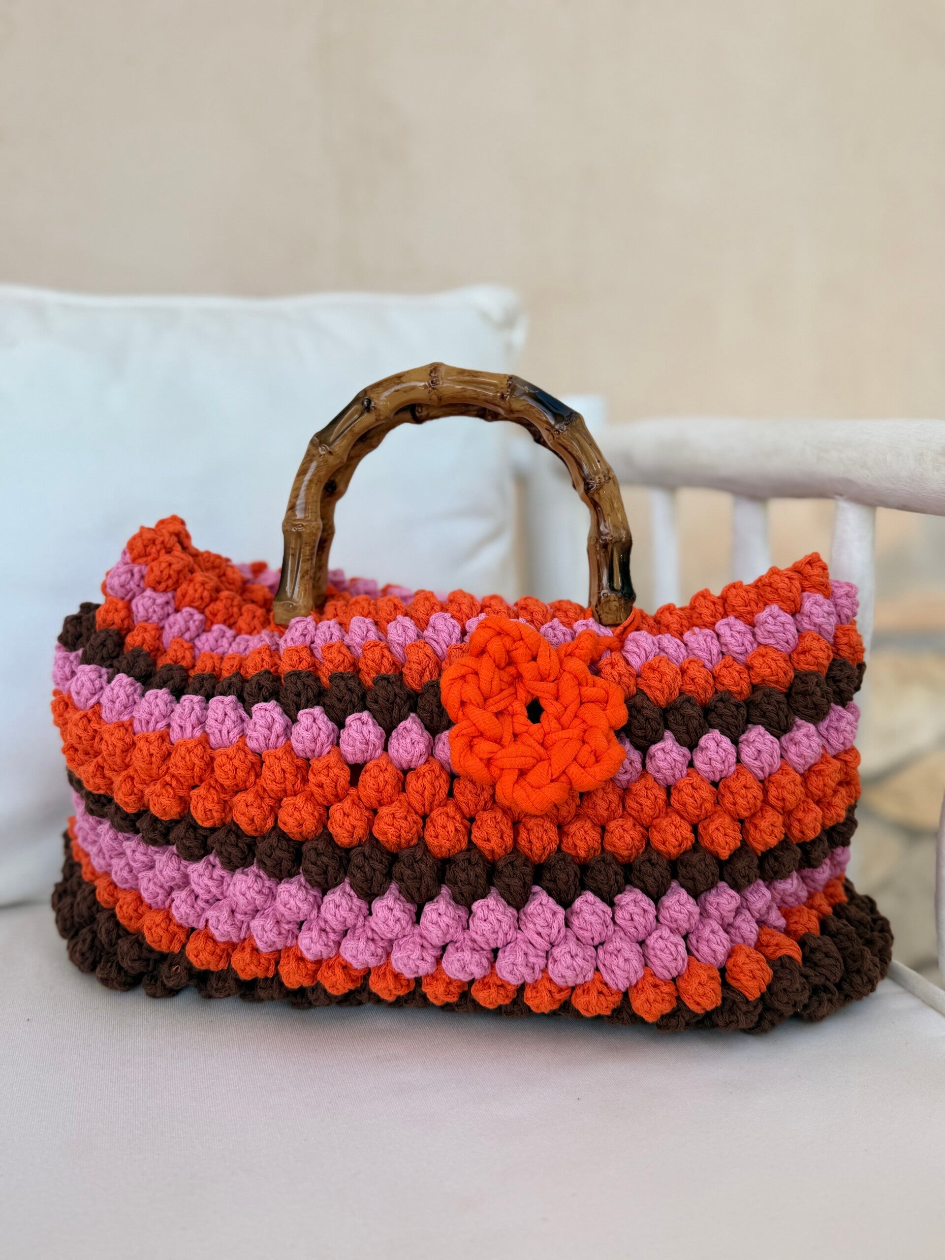 Borsa a uncinetto tri color ,manici in bamboo e charms crochet .