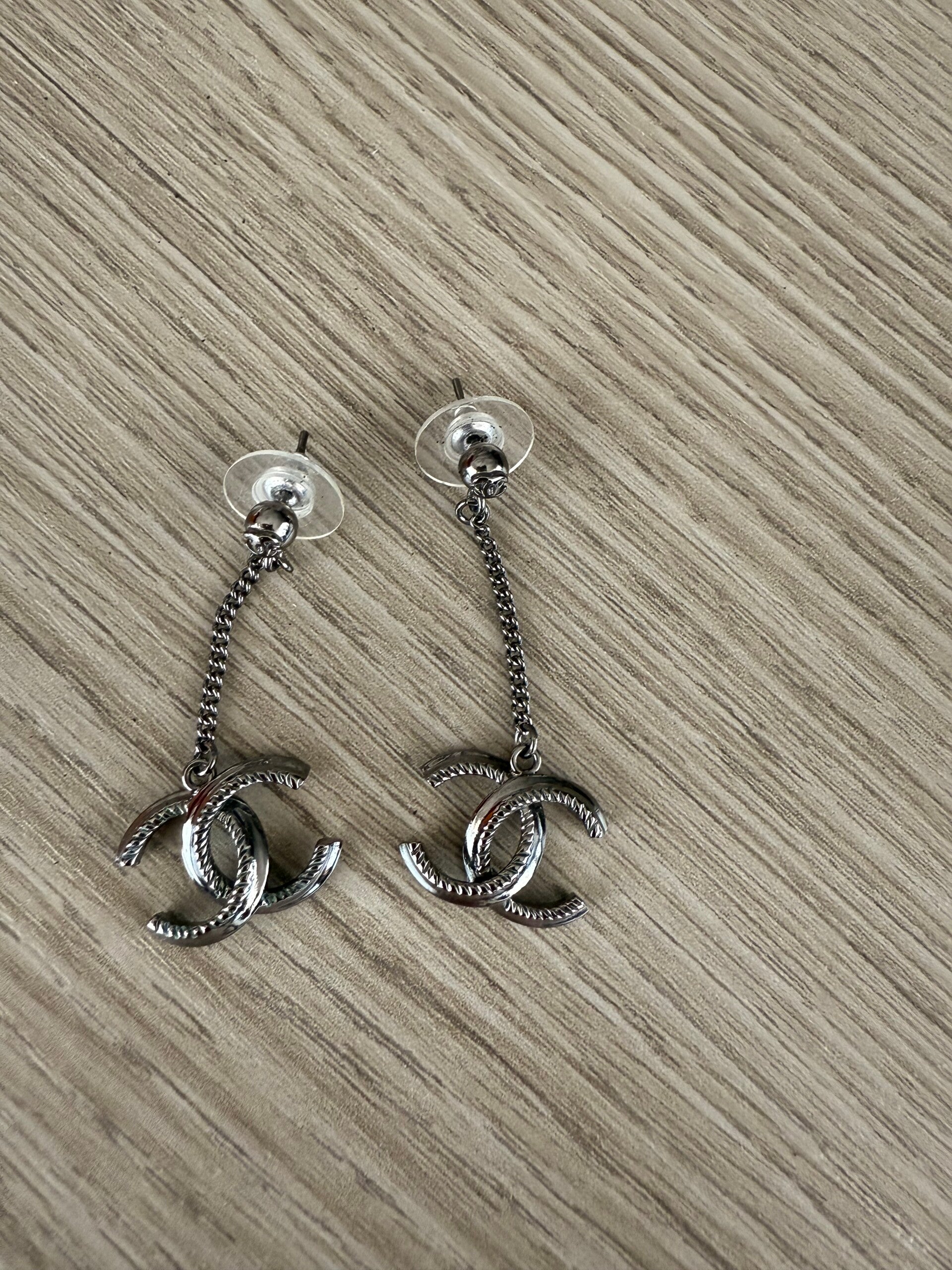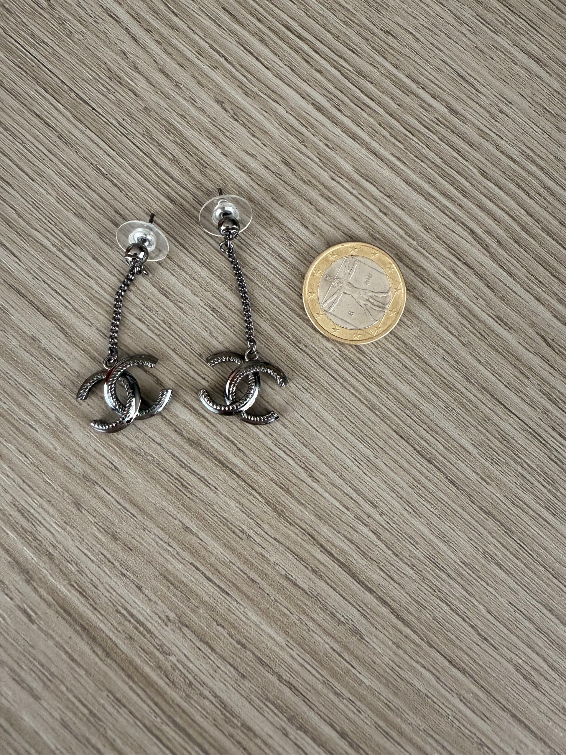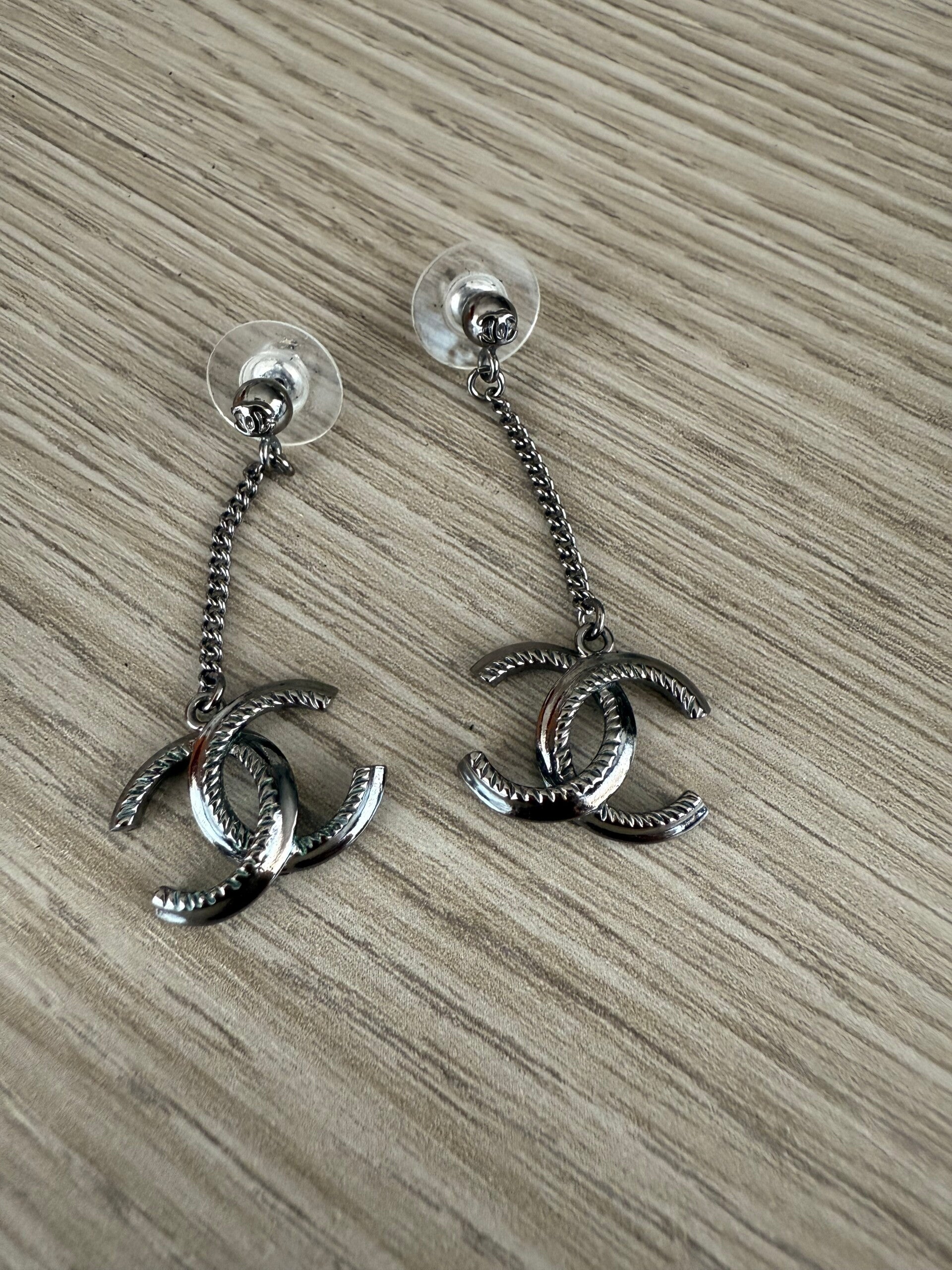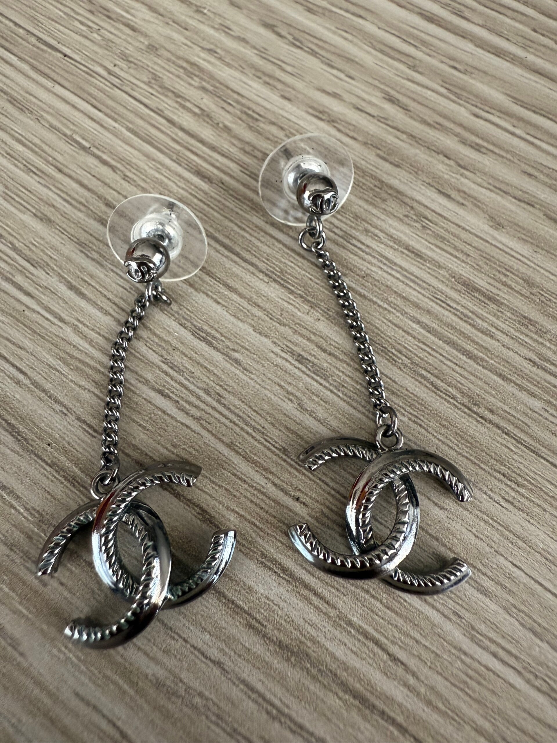 Chanel Orecchini Pendenti Logo CC – Metallo Argento