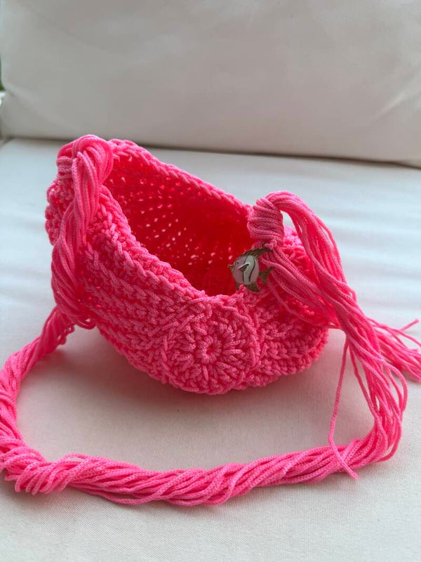 Borsa in crochet mini con tracolla da spalla e charm pesciolino .