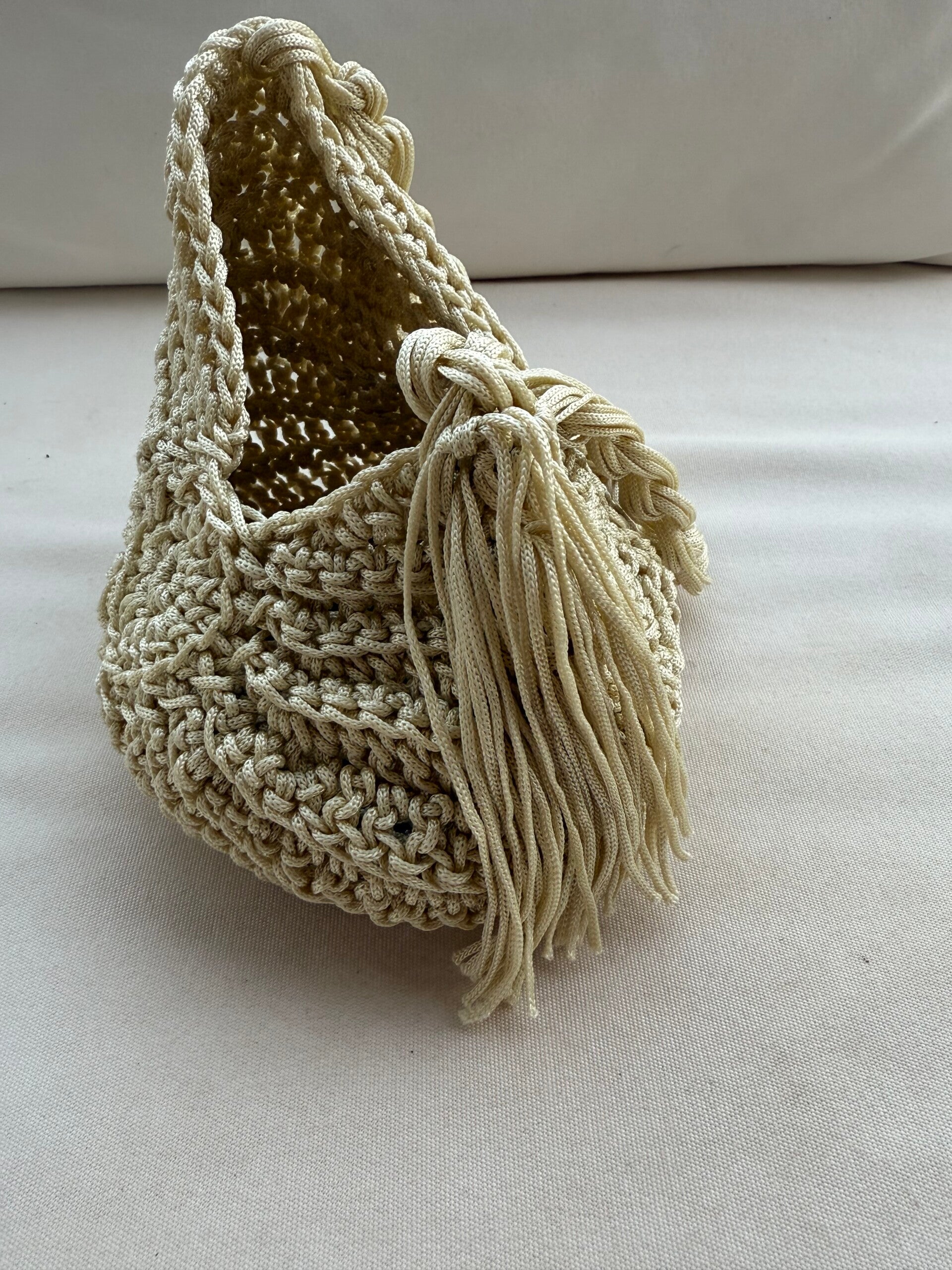 Borsa in crochet mini Shell con tracolla da spalla e frange .