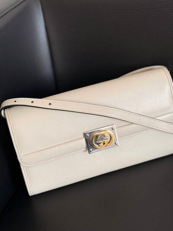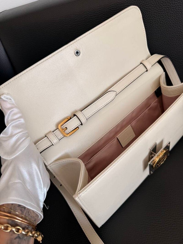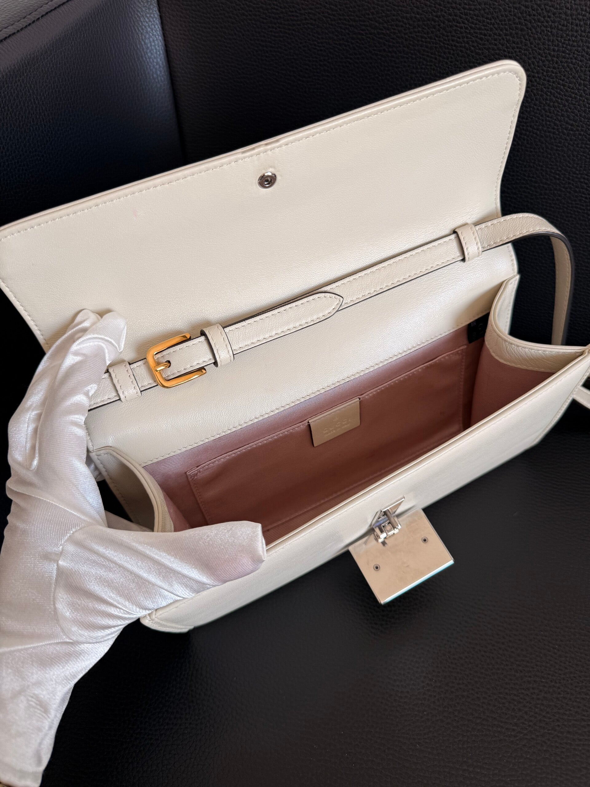 Un’eleganza essenziale che non passa mai di moda: questa Gucci Matisse Shoulder Bag in pelle liscia beige è l’accessorio ideale per chi ama la raffinatezza minimalista. Il design pulito è impreziosito dall’iconico logo GG in metallo dorato sul fronte, simbolo intramontabile della Maison.