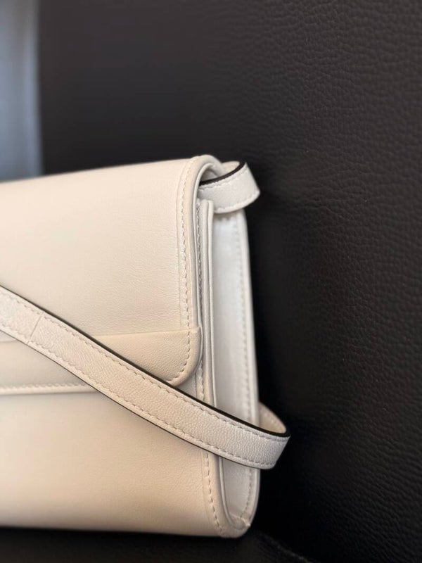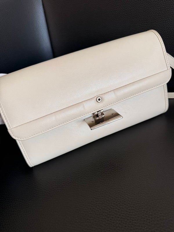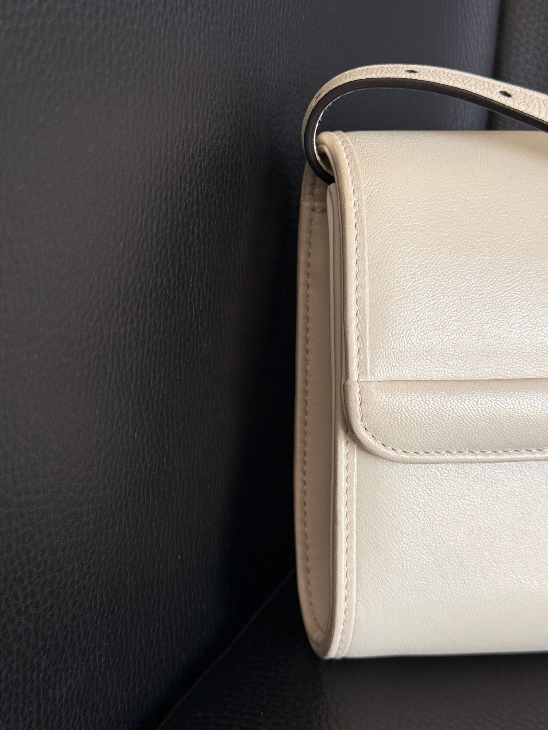 La tracolla regolabile consente di indossarla comodamente a spalla, rendendola perfetta sia per il giorno che per la sera. La chiusura a patta con bottone a pressione ne garantisce praticità e sicurezza, mentre la silhouette lineare la rende un pezzo versatile e senza tempo.