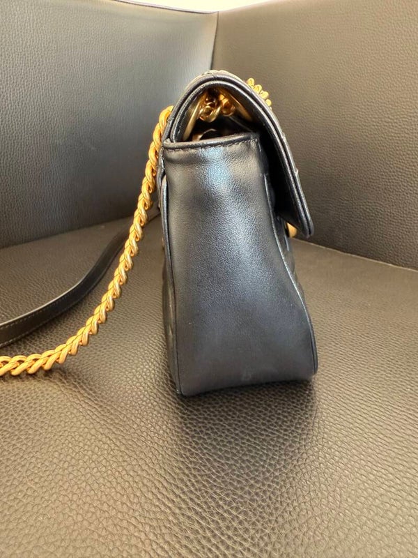 Realizzata in pelle matelassé a motivo chevron, si distingue per l’iconico logo GG in metallo color oro anticato e la catena scorrevole che consente di indossarla sia a spalla che a tracolla. Un modello versatile, perfetto dal giorno alla sera.