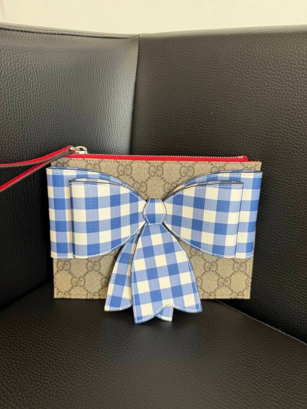 Gucci Clutch Bow Print – GG Supreme & Vichy Blue Ribbon