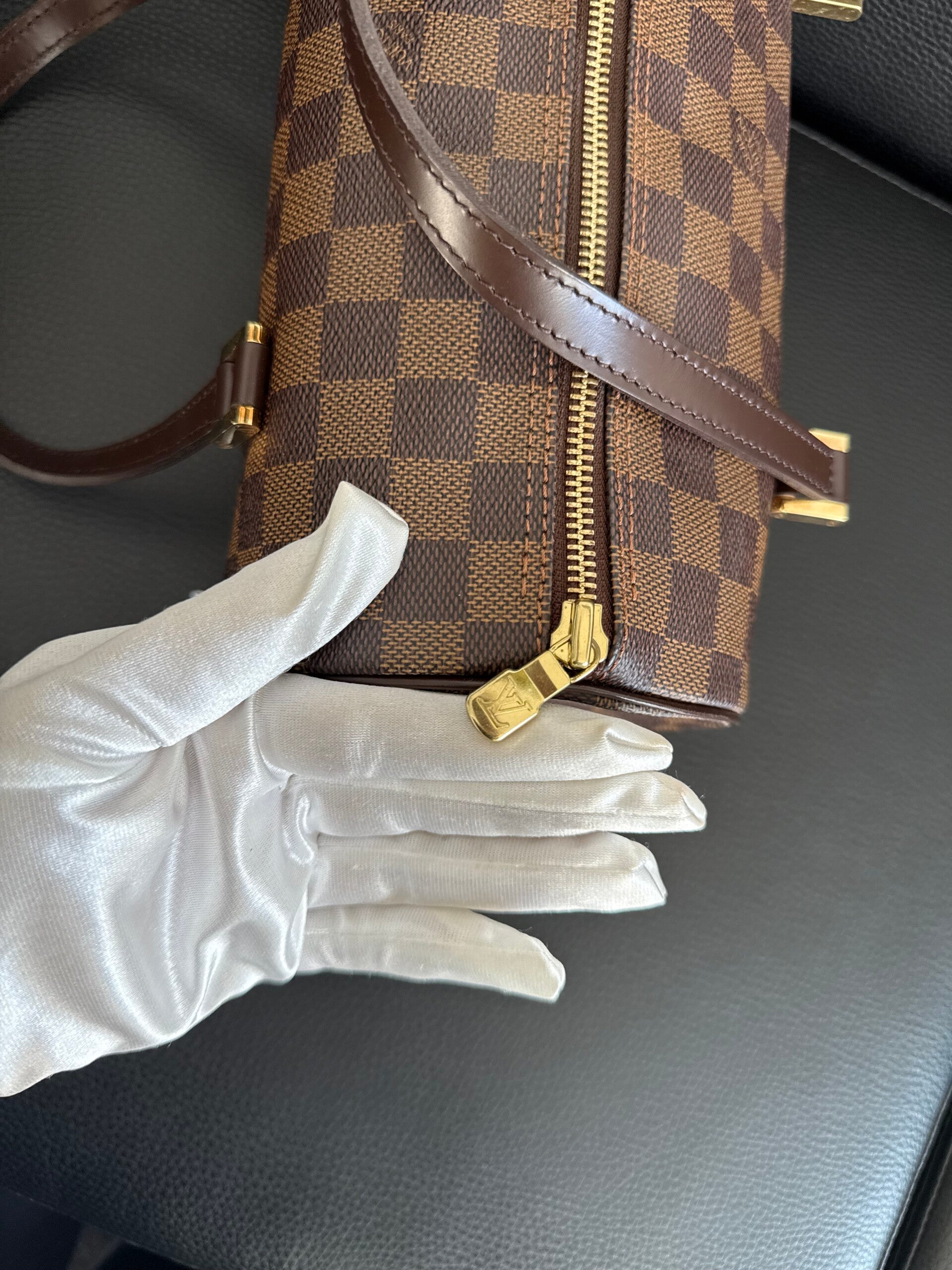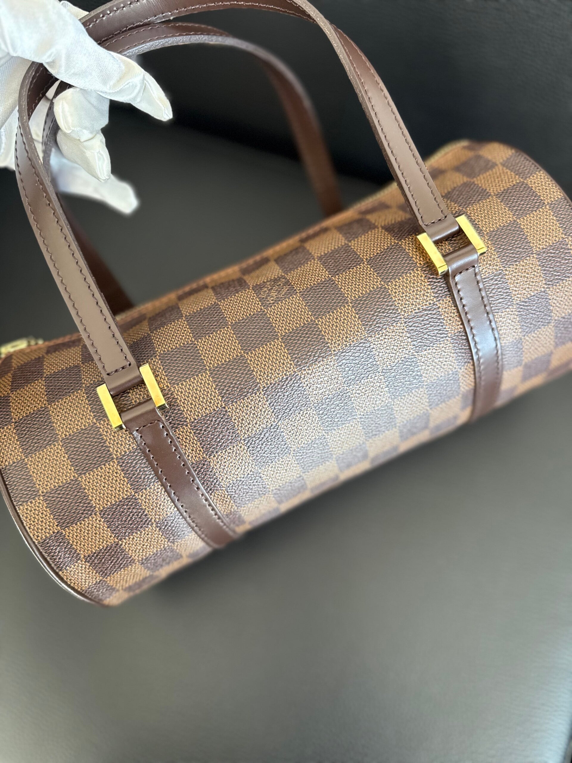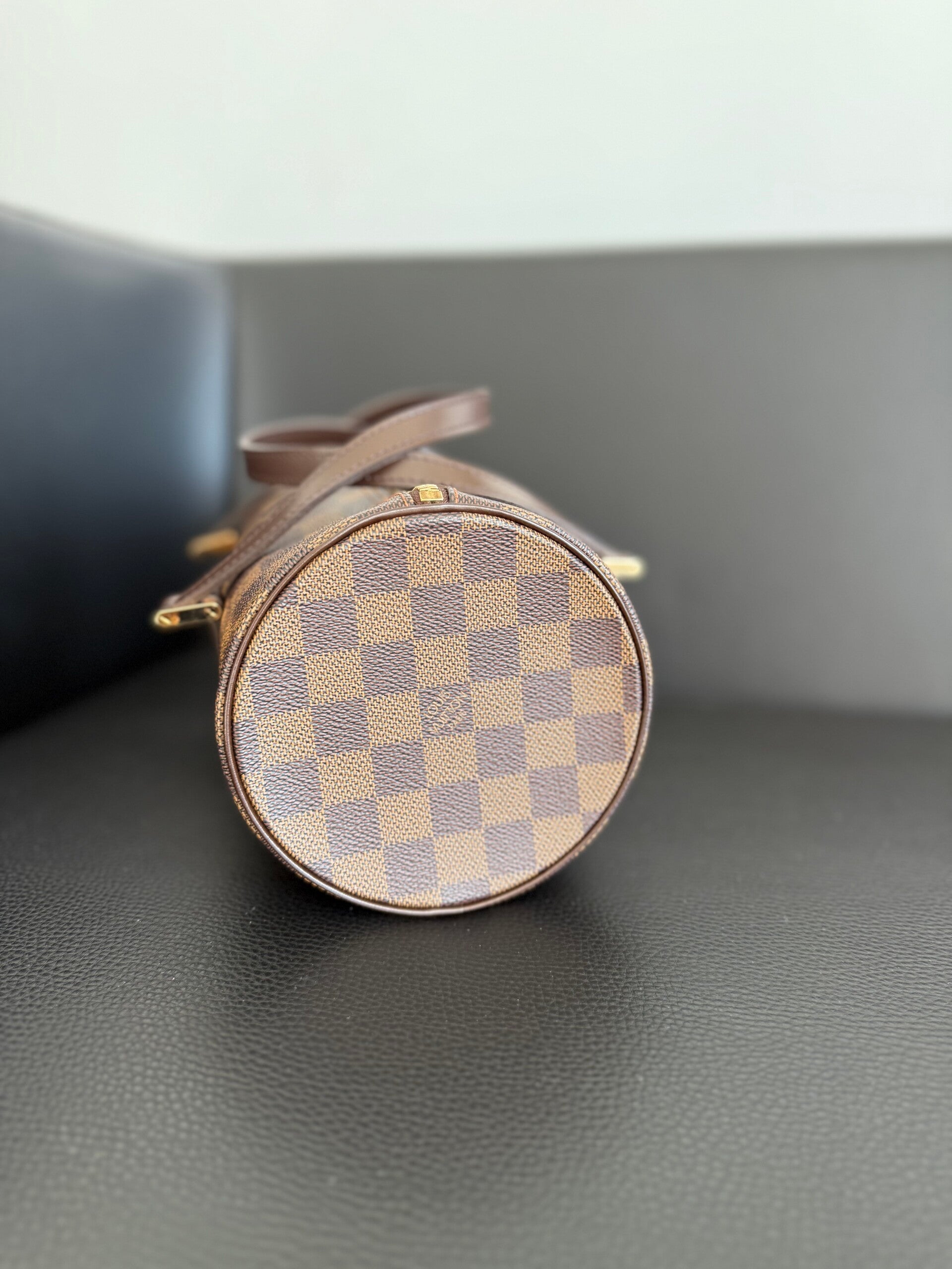 Un’icona senza tempo della Maison, la Papillon 26 in tela Damier Ebene è una caramellina dal fascino rétro ma sempre attualissimo. La forma cilindrica, i manici in pelle ed i dettagli dorati la rendono perfetta per un look chic e strutturato, sia di giorno che di sera. Leggera, resistente e super versatile.