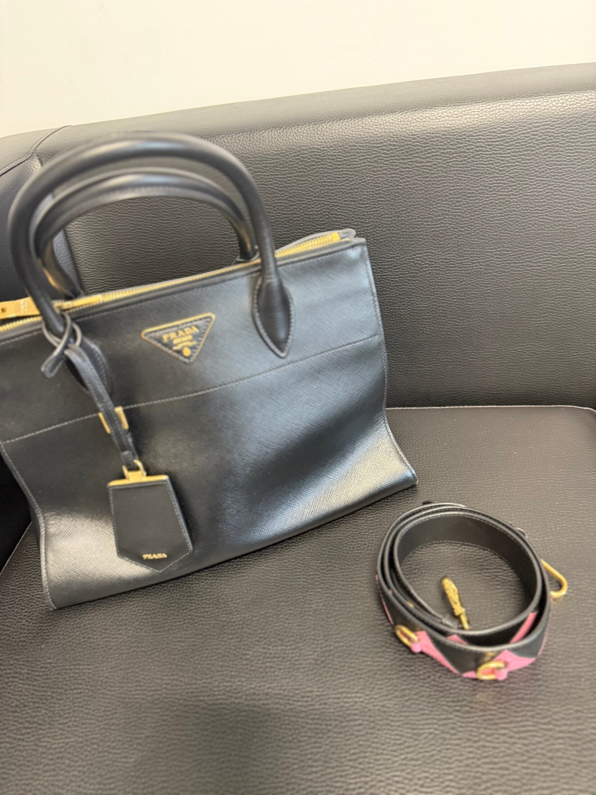 Una delle borse più eleganti e strutturate di Prada: la Paradigme, realizzata in iconica pelle Saffiano, resistente ai graffi e dal finish lussuoso.