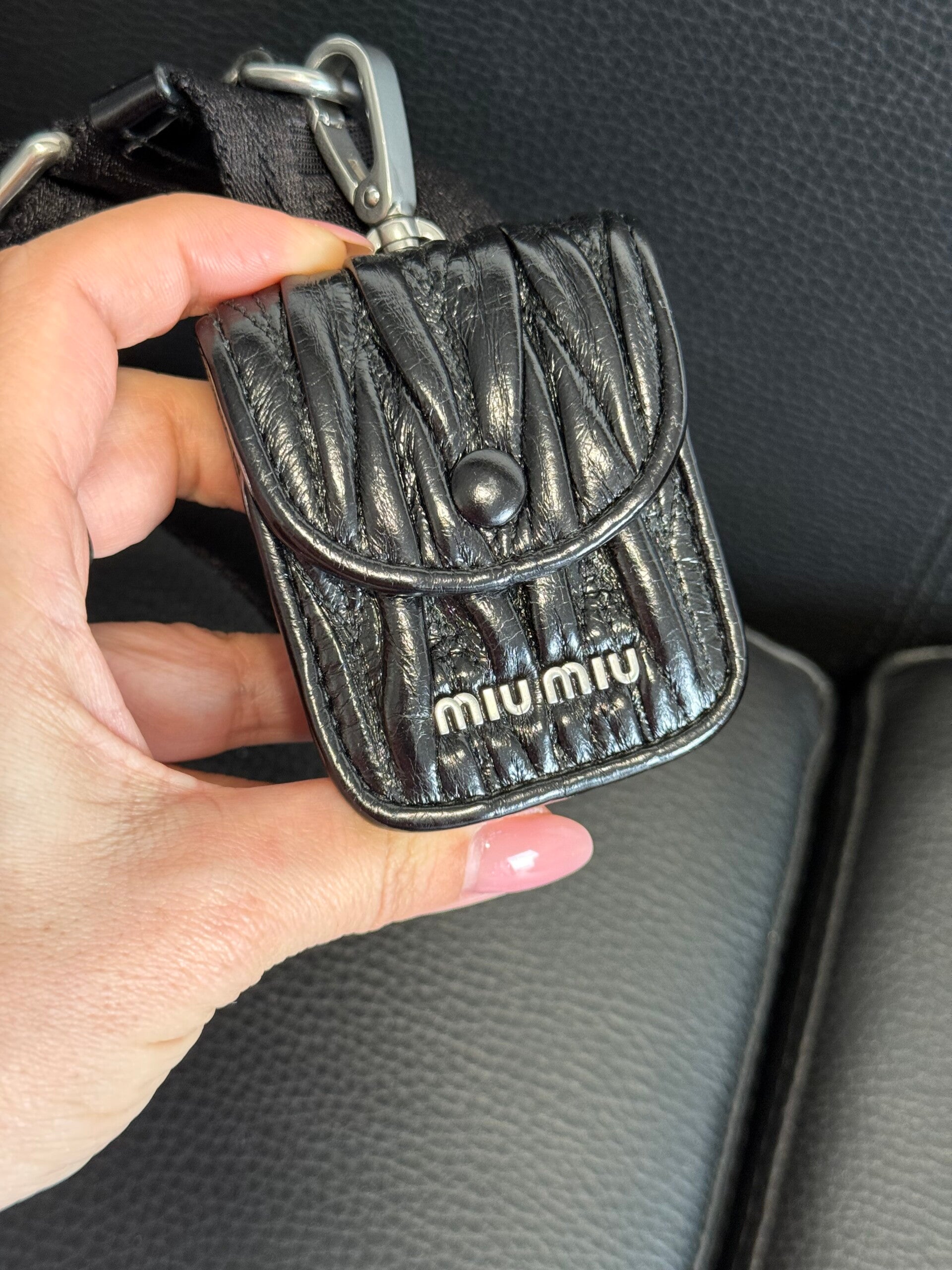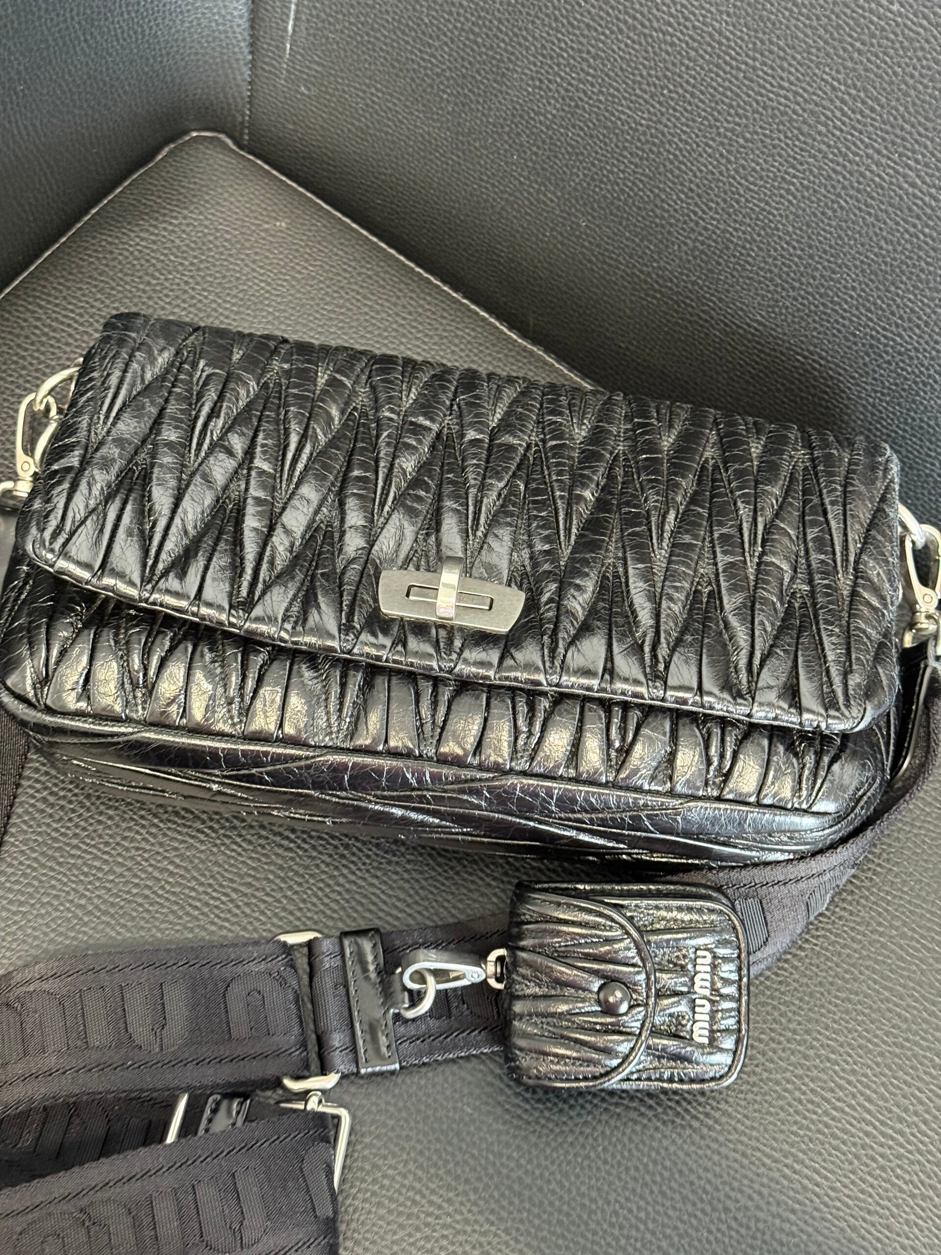 MIU MIU Borsa Matelassé Nera con Tracolla Logata e Mini Pouch