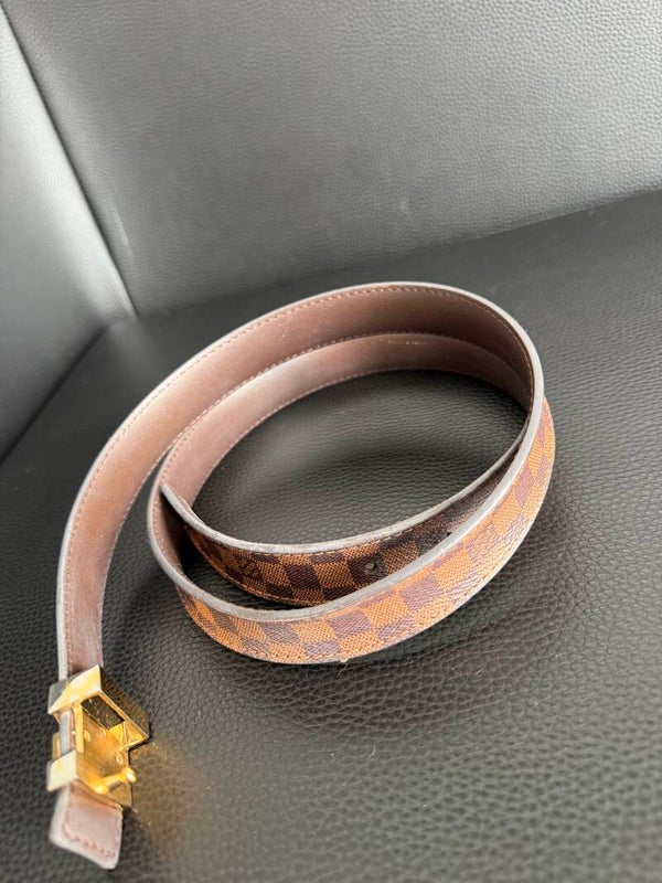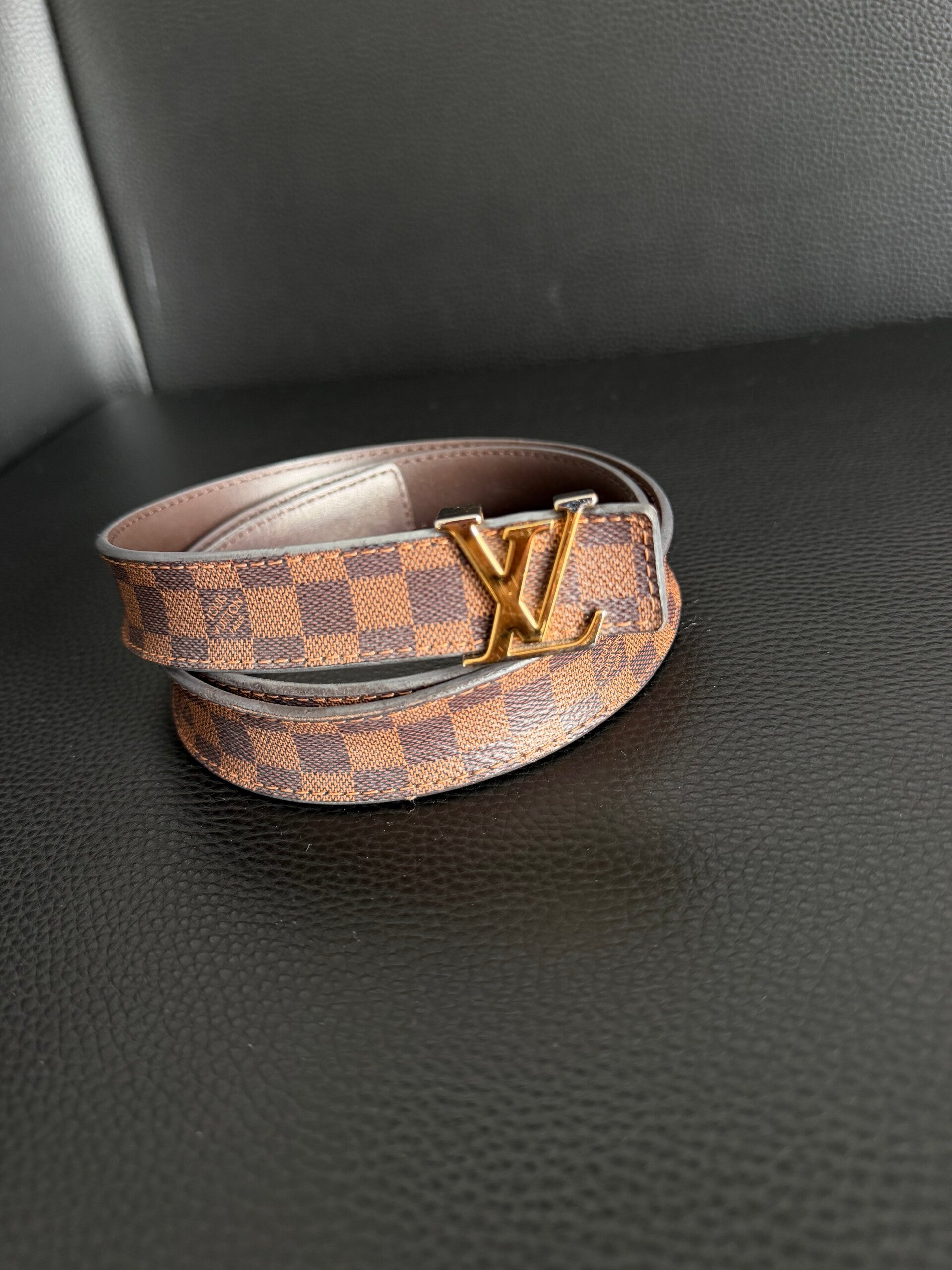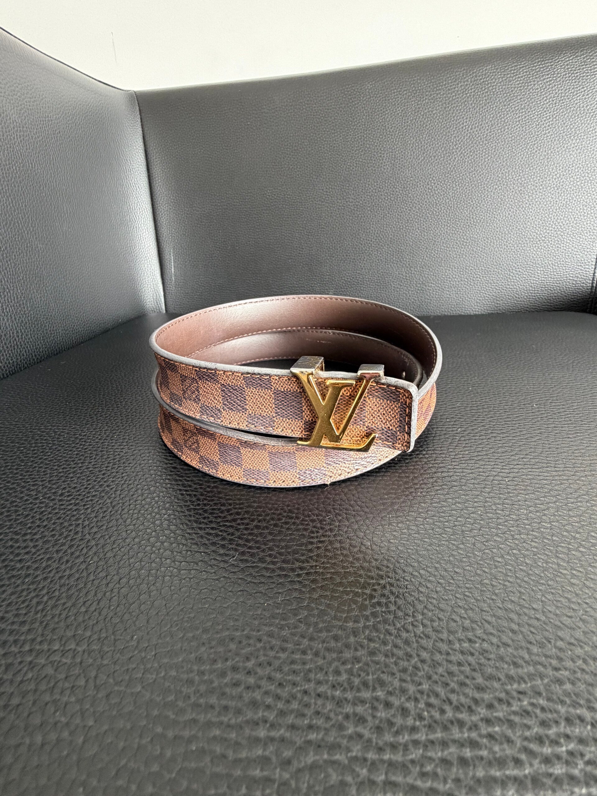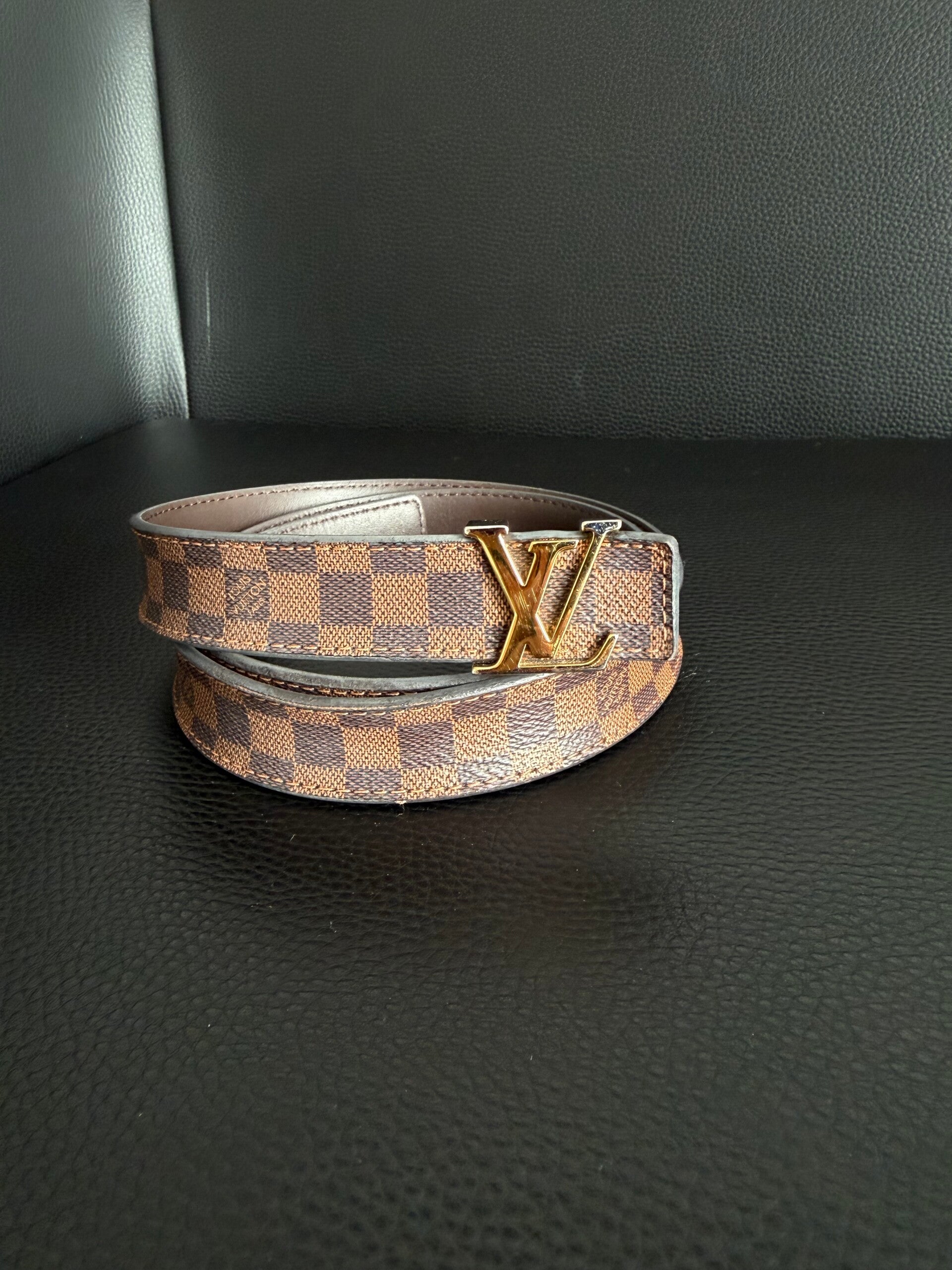 La Louis Vuitton LV Initiales Damier Ebene Belt è una cintura iconica della maison Louis Vuitton caratterizzata dal celebre motivo Damier Ebene che rende immediatamente riconoscibile il design della casa francese. Il modello è impreziosito dall’inconfondibile fibia LV in metallo dorato, simbolo distintivo del brand. Elegante ma allo stesso tempo versatile, è un accessorio perfetto per completare sia look casual che outfit più raffinati. Realizzata in tela Damier con interno in pelle liscia, offre comfort e resistenza nel tempo.