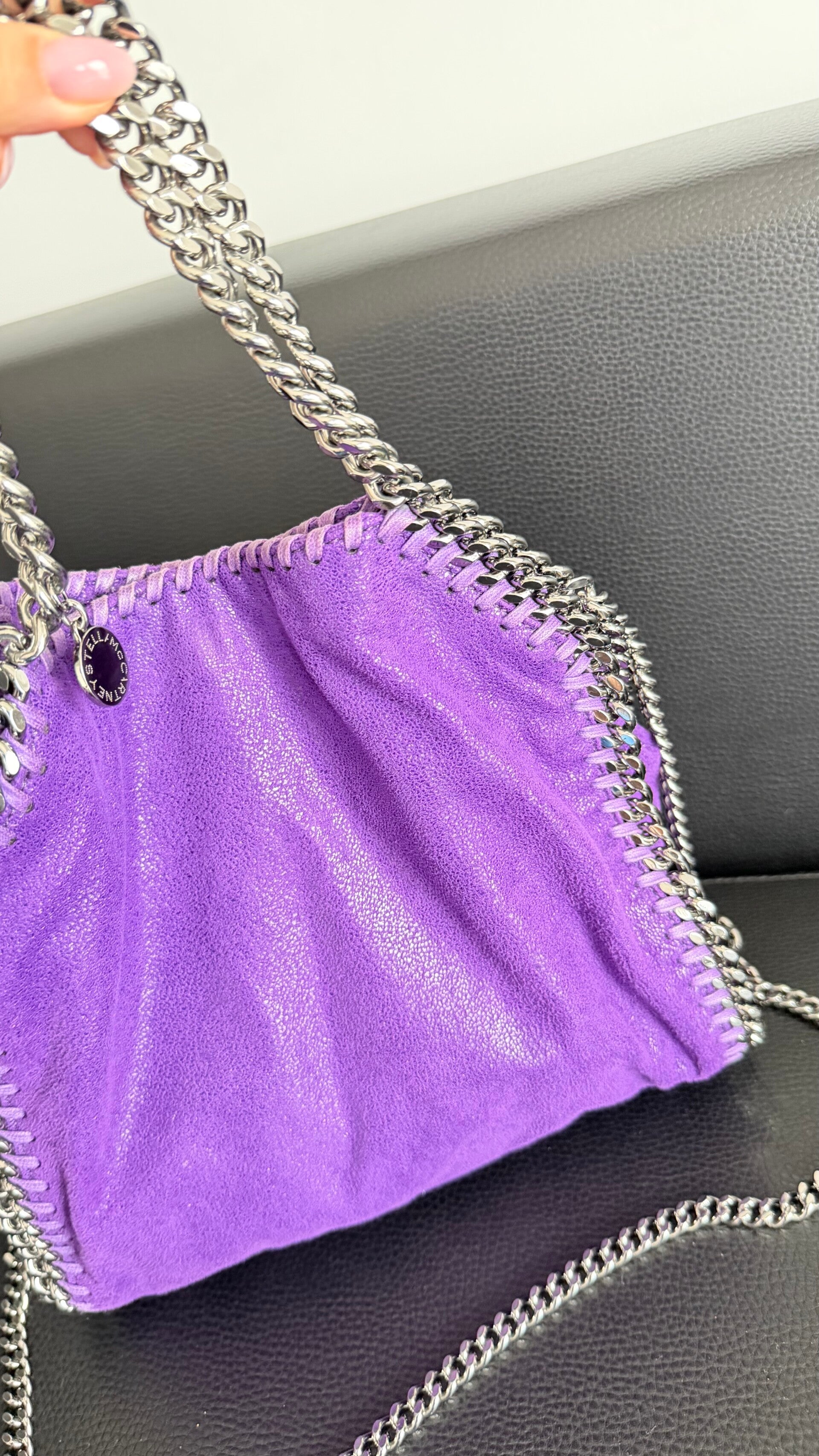 Iconica, riconoscibile e contemporanea: la Falabella di Stella McCartney è uno dei modelli più amati del brand, simbolo di lusso etico e design distintivo. Questa versione in una raffinata tonalità viola aggiunge un tocco deciso e sofisticato a qualsiasi look.